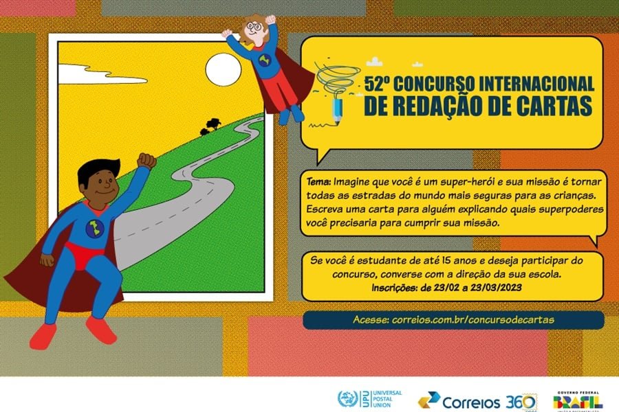 Esse é tema deste ano da 52ª edição do Concurso Internacional de Redação de Cartas. Podem participar estudantes de até 15 anos de escolas públicas e particulares de todo o país.