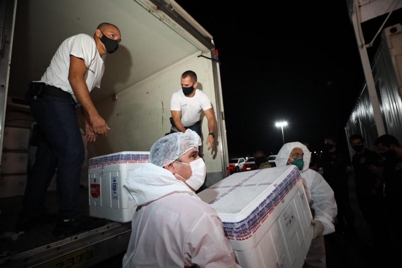 O Governo do Estado, por meio da Fundação de Vigilância em Saúde do Amazonas (FVS-AM), iniciou hoje (19/01) a distribuição de 282 mil doses da vacina contra a Covid-19, enviadas pelo Ministério da Saúde (MS), 26 mil doses a mais que o previsto inicialmente. De acordo com o Plano Nacional de Imunização (PNI), do MS, a prioridade na primeira fase é a vacinação de indígenas aldeados maiores de 18 anos, trabalhadores da saúde, idosos e pessoas com deficiência (PcDs) atendidos em instituições.