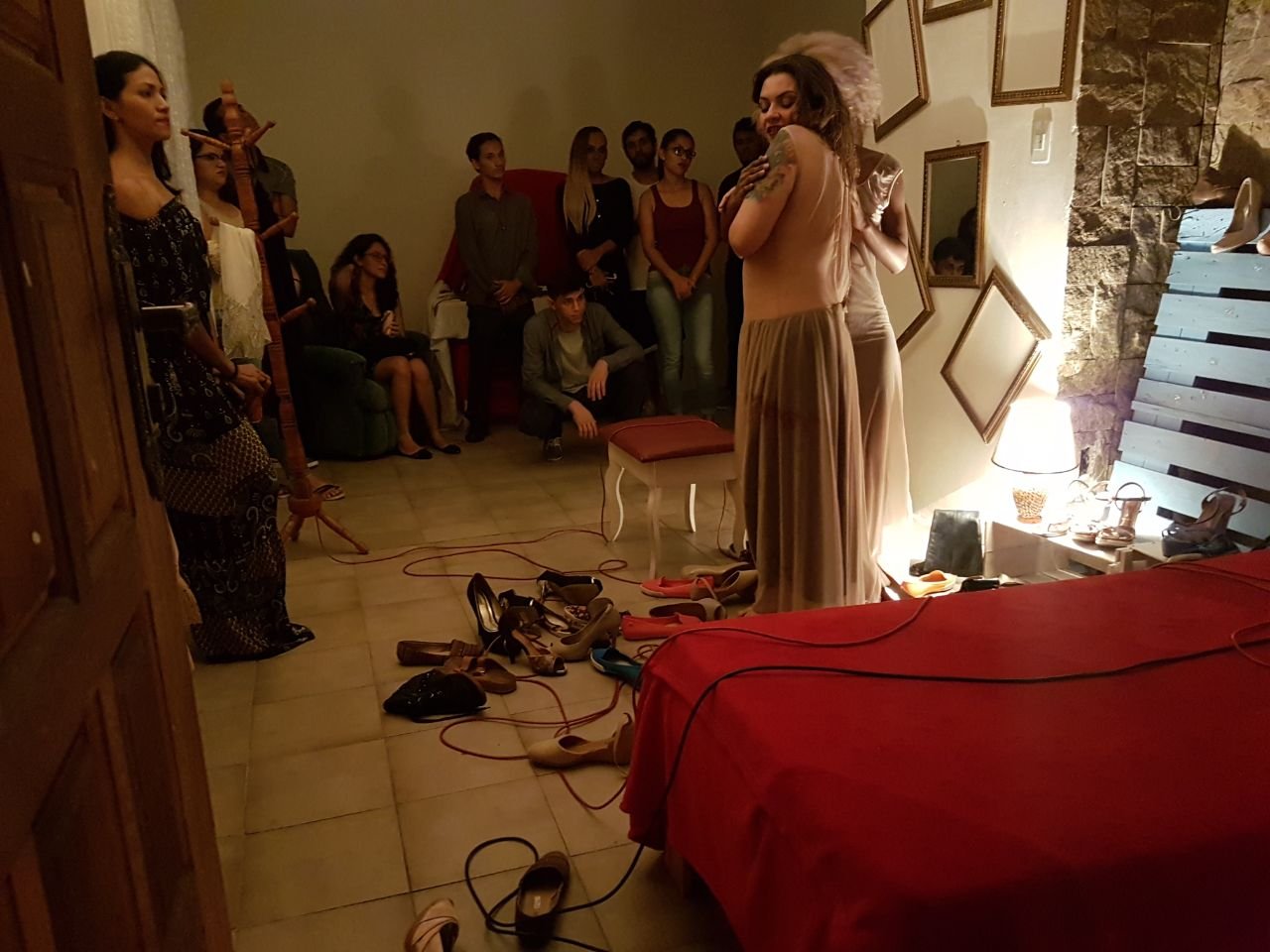 O espetáculo-instalação, como é denominado a obra também pesquisa a mesma no formato instalação- ambiente casa. Tendo como proposta imergir num ambiente relativamente comum para a maioria das pessoas.