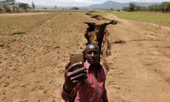 NAIRÓBI — Eliud Njoroge estava em casa quando viu surgir uma rachadura no chão da casa onde vivia, em Mai Mahiu, no Quênia. Naquele momento, não teve dúvidas, sabia que não se tratava de uma falha na construção. Ele abandonou a residência com a esposa e convocou os vizinhos para retirar os pertences. Poucos dias depois, a construção foi engolida por uma cratera. A fissura que provocou a tragédia na vida de Njoroge se estende por vários quilômetros e, num futuro distante, deve dividir o continente africano em dois.