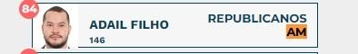 Por enquanto, Adail Filho (Republicanos) aparece em primeiro entre os deputados federais amazonenses, com 146 votos. Amom Mandel (Cidadania), que em 2022 foi o candidato mais votado proporcionalmente em todo o país, ocupa a segunda posição.