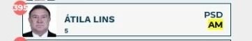 Em terceiro, na parcial, aparece Sidney Leite (PSD). Fausto Jr. (UB), em primeiro mandato na Câmara Federal, aparece em penúltimo. Já Átila Lins (PSD), eleito nove vezes deputado federal, aparece em último lugar.
