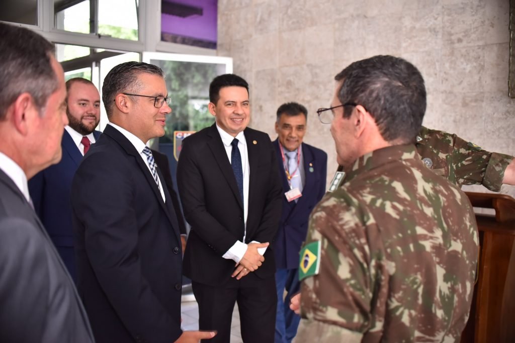 Os deputados Josué Neto, presidente da Assembleia, Fausto Júnior e Delegado Péricles estiveram no CMA (Comando Militar da Amazônia), nesta quinta-feira (26), para tratar sobre a  próxima edição da Assembleia Itinerante que terá como tema principal as queimadas no sul da Amazônia. Os parlamentares foram recebidos pelo General Augusto Nardi, atual comandante do CMA.