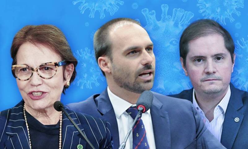 O deputado federal Eduardo Bolsonaro, a ministra da Agricultura, Tereza Cristina, e o Advogado-Geral da União, Bruno Bianco Leal,  estão com Covid-19. A ministra e o deputado informaram sobre o teste positivo na manhã desta sexta-feira, 24. Bianco Leal testou positivo na noite de quinta-feira, 23, e agora aguarda o resultado de uma contra-prova.