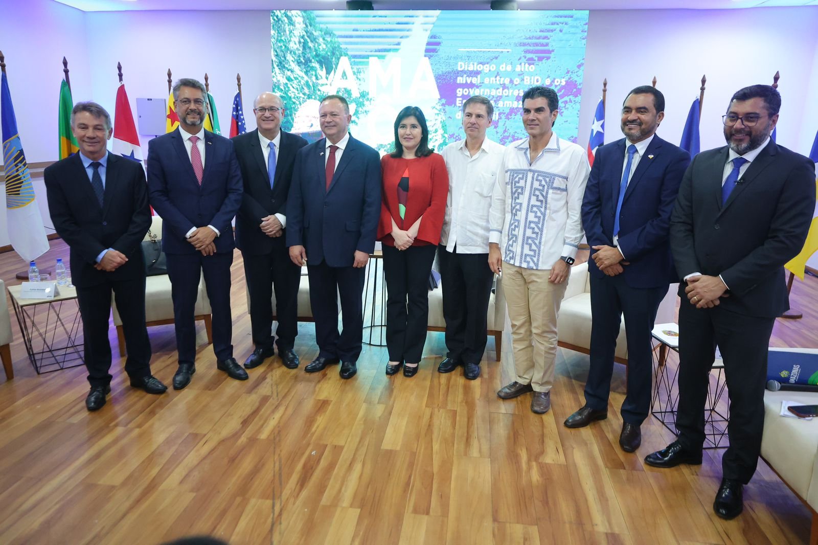 Além de governadores da Amazônia brasileira, estiveram presentes o presidente do Banco Interamericano de Desenvolvimento (BID), Ilan Goldfajn; a ministra do Planejamento e Orçamento, Simone Tebet; e o ministro da Justiça e Segurança Pública, Flávio Dino.