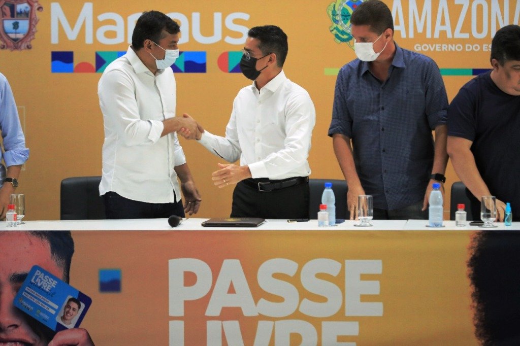 Estudantes da rede pública terão passe livre no transporte coletivo de Manaus; Wilson Lima e David Almeida assinam convênio que garante o benefício