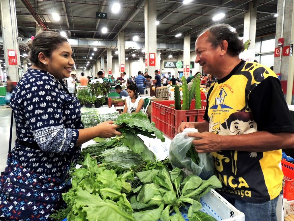 Para a produtora Loide Mendes Ferreira, que reside em Rio Preto da Eva, além da economia, os clientes ainda contam com um ambiente mais organizado, seguro, limpo e a comodidade que o centro de compras oferece. “Tem cliente que vem usar um dos bancos, comer alguma coisa, comprar algo no shopping e acaba passando aqui com a gente e levando algumas frutas e verduras pra casa”, comenta.