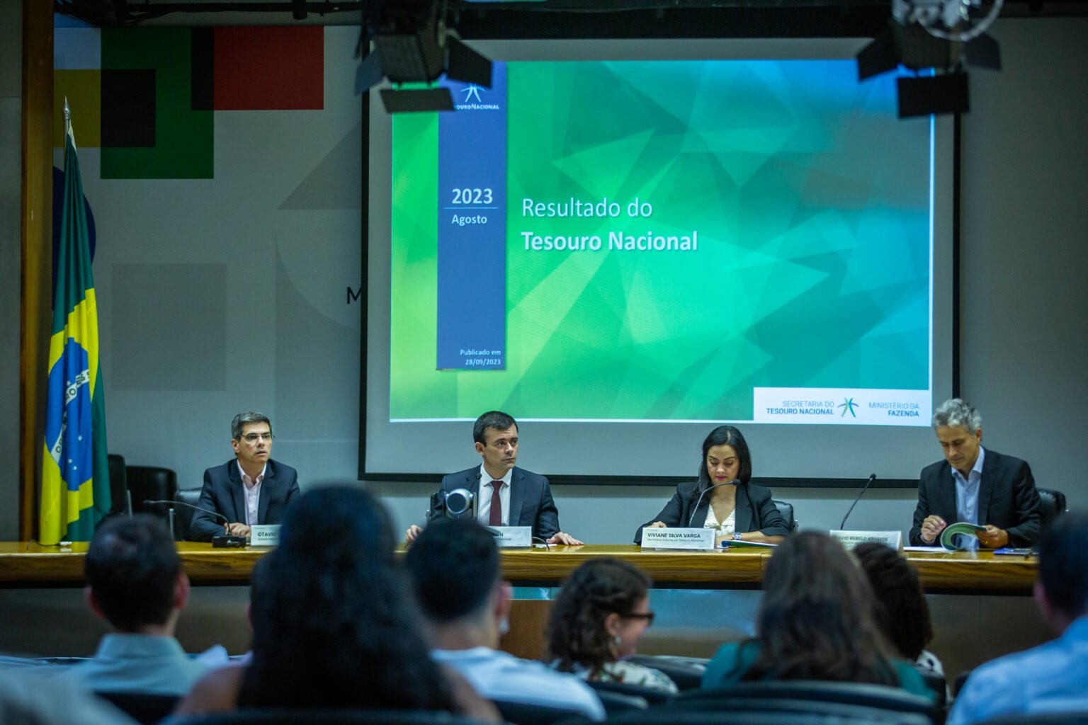 Além do secretário do Tesouro Nacional, Rogério Ceron, participaram da entrevista coletiva para divulgação do RTN de agosto a secretária adjunta do Tesouro Nacional, Viviane Silva Varga; o subsecretário da Dívida Pública, Otavio Ladeira; e o subsecretário de Planejamento Estratégico da Política Fiscal, David Athayde.