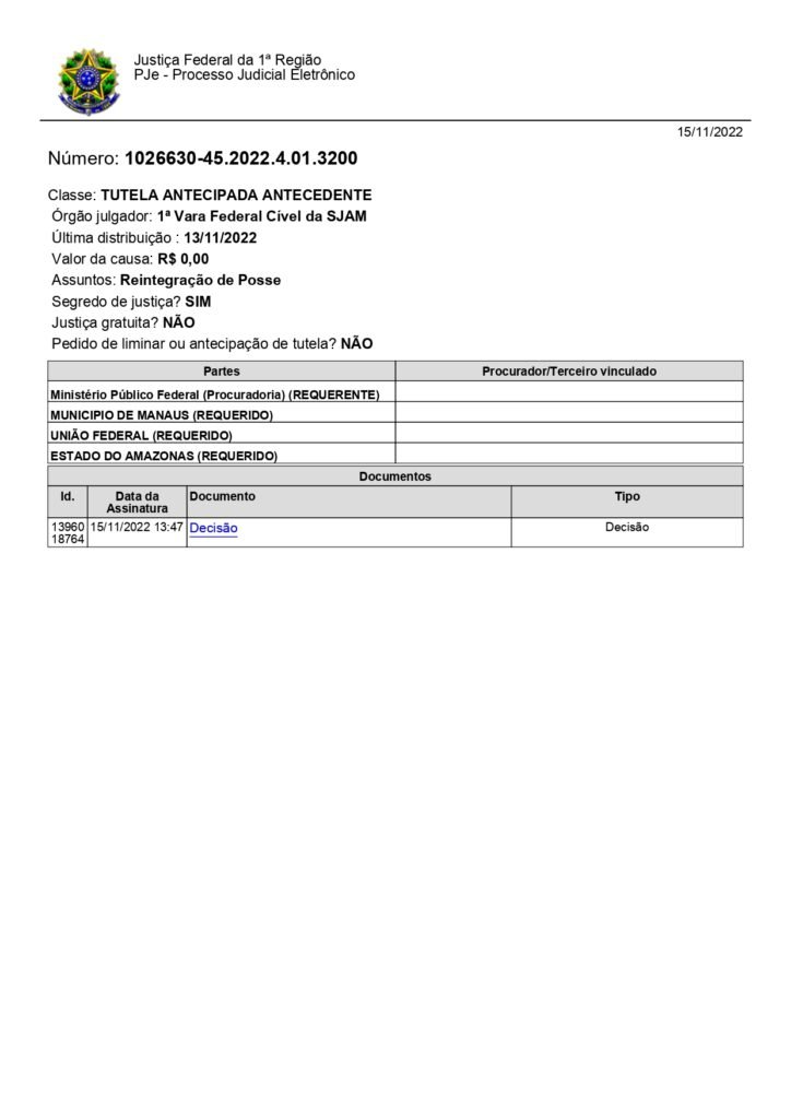 MANAUS – A Juíza federal titular da 1ª Vara do Tribunal Regional Federal (TRF-1), Jaiza Maria Pinto Fraxe, determinou no início da tarde desta terça-feira (15), que o Governo Federal, o Governo do Estado e a Prefeitura de Manaus tomem providências imediatas para a dispersão da ocupação que ocorre em frente ao Comando Militar da Amazônia (CMA), na zona oeste de Manaus.