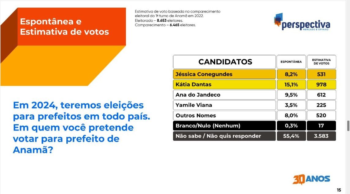 A pesquisa publicada pela Perspectiva Mercado e Opinião ouviu 200 pessoas na última quarta-feira (2) em Anamã. A pesquisa é do tipo quantitativa, por amostragem, que utiliza um sistema de CATI (Computer Assisted Telephone Interview), com entrevistas pessoais realizadas por telefone.
