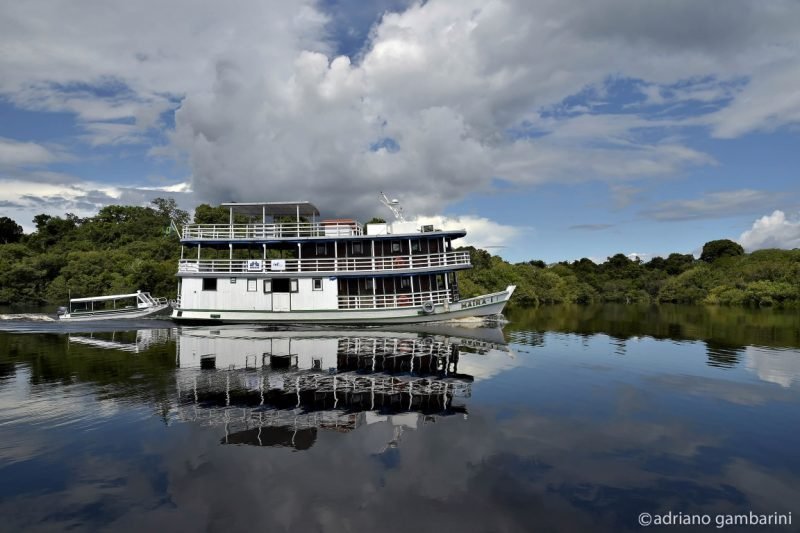 “O que me encanta no rio Negro especificamente é a importância silenciosa dele. Porque ele é uma das veias mais imprescindíveis para formação da Bacia Amazônica, mas ele faz isso de forma silenciosa. Ele que leva água para Manaus, água fértil, ele é a fertilidade da Bacia Amazônica, é como eu vejo o rio”, conta Adriano Gambarini ao ((o))eco. “E como fotógrafo, a magia visual do rio Negro é a sua permanente mutação. Às seis horas da manhã ele é um tom de cor, às 10 da manhã é outro. Ele vai do preto, ao azul, ao prateado. Parece que você está em vários rios ao mesmo tempo. Isso para mim é lindo. Eu já peguei dias de tempestade e dias de calmaria onde o rio vira um espelho em que você não sabe onde rio e onde é céu. No livro tem fotos que registram essas diferentes cores”, continua o fotógrafo.