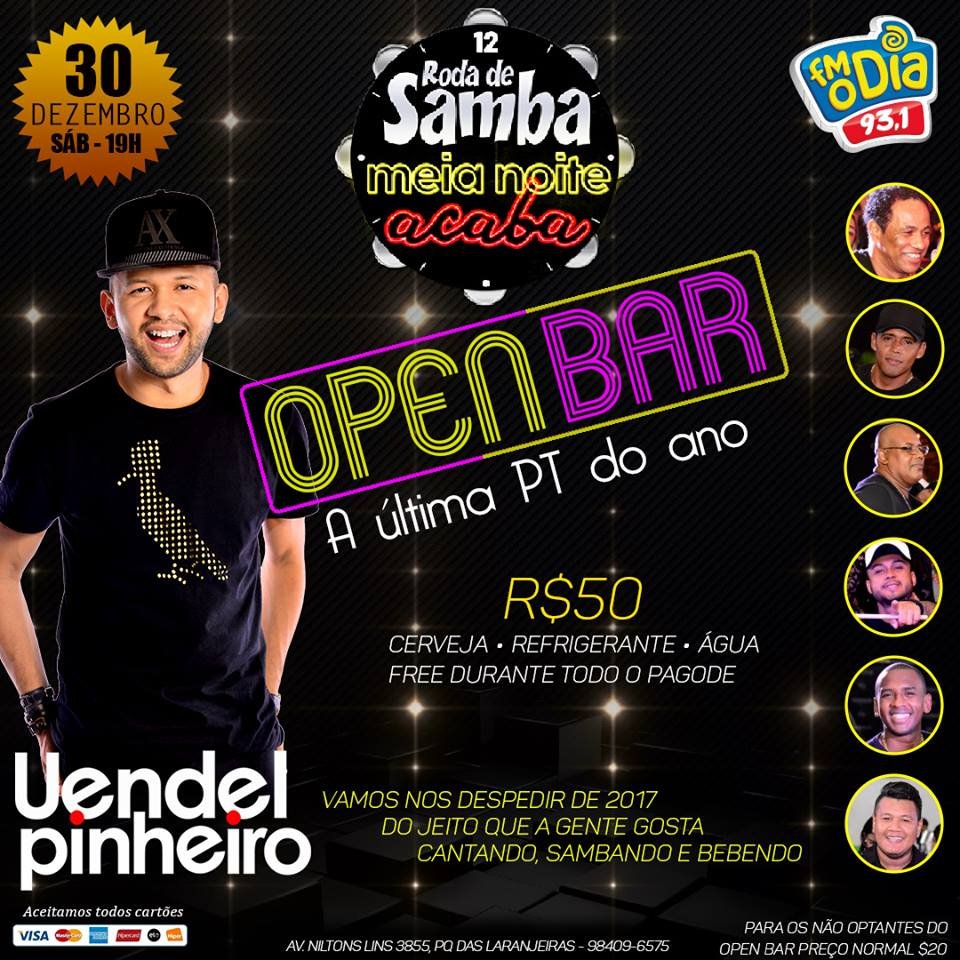 Com direito a Open Bar (Cerveja Itaipava, refrigerante e água), a badalada contará com o som de Uendel Pinheiro, Jamblacks e convidados que esquentará o público com um repertório de clássicos de pagode e muito samba de raiz.