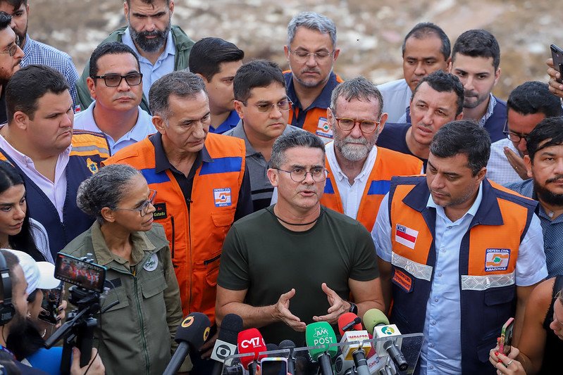 Manaus (AM) – O governador do Amazonas, Wilson Lima e o prefeito David Almeida percorreram, na tarde deste domingo (26), as zonas Norte e Leste da cidade, com o ministro do Desenvolvimento Regional, Waldez Góes e com a ministra do Meio Ambiente, Marina Silva, após as fortes chuvas que têm causado deslizamento e morte em Manaus.