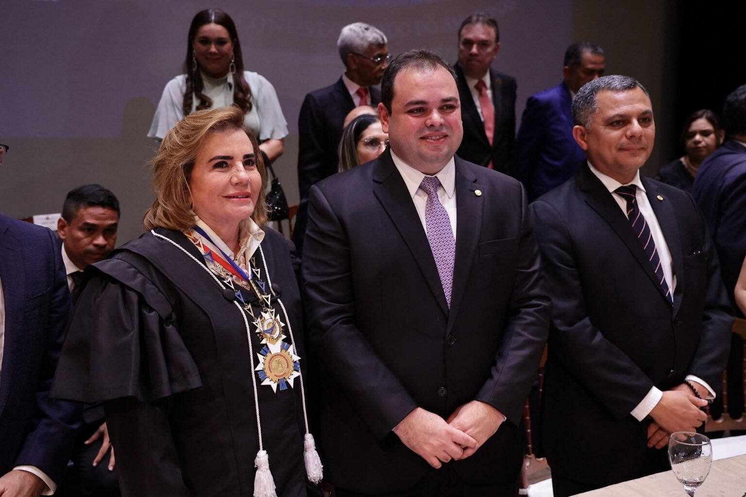 Presidente da Assembleia Legislativa do Amazonas (Aleam), o deputado estadual Roberto Cidade (UB), compôs a mesa de honra da cerimônia que oficializou a conselheira Yara Lins dos Santos como a nova presidente do Tribunal de Contas do Amazonas (TCE-AM). Além da nova presidente, foram empossados, para o biênio 2024-2025, os conselheiros Luis Fabian Barbosa, como vice-presidente; Josué Cláudio Neto, como corregedor-geral; Mario de Mello, como ouvidor, e Júlio Pinheiro, como coordenador-geral da Escola de Contas Públicas do Amazonas (ECP-AM).