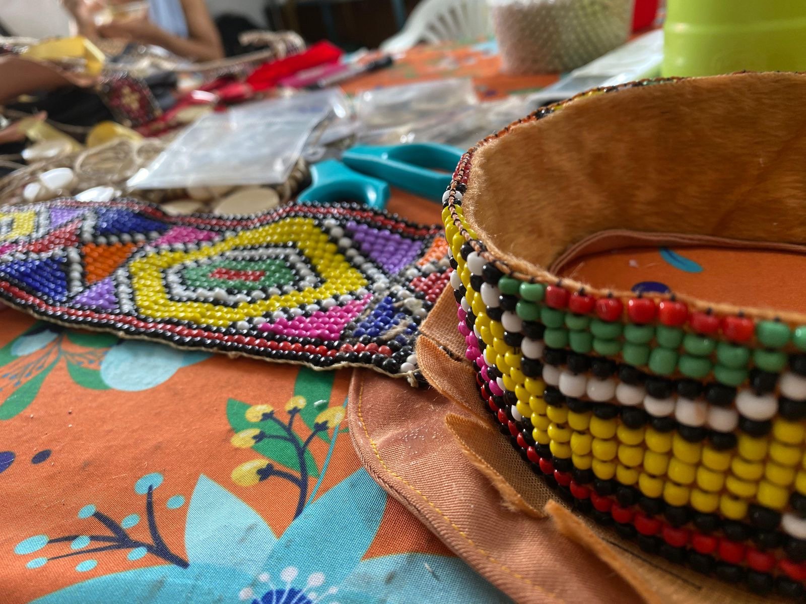 A mostra apresentará peças artesanais produzidas com a técnica de tear e também do macramê; trançados feitos plumagens, além e outras produções onde foram usadas a casca do açaí. São maxicolares, gargantilhas, taças e garrafas personalizadas com materiais sustentáveis.