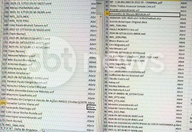 Também foram identificados números atribuídos a ministros do Supremo Tribunal Federal (STF), entre eles Dias Toffoli, Alexandre de Moraes e Nunes Marques. A agenda ainda continha o contato do ex-ministro da Corte Ricardo Lewandowski e de seu filho, Henrique Lewandowski.
