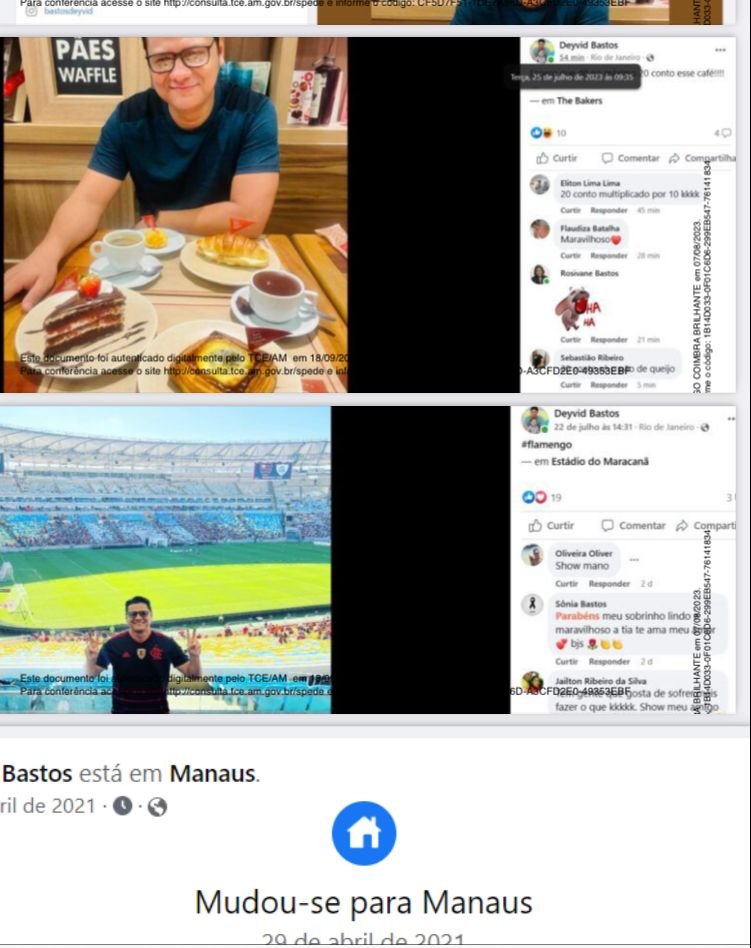 Além de destacar que o filho do prefeito diz morar em Manaus, a reportagem mostrou ainda, que Deyvid estava em viagem pelo Rio de Janeiro, no período em que deveria cumprir jornada de trabalho em Anamã.