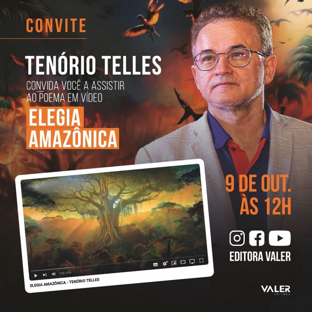O escritor e poeta amazonense Tenório Teles lança vídeo-poema sobre Amazônia e suas origens, a Elegia Amazônica, na próxima quinta-feira (9), às 12h. Produzido em parceria com a Editora Valer, o trabalho consiste na criação de uma poética amazônica, seu presente, suas origens e sua dramática realidade atual, de acordo com o autor.