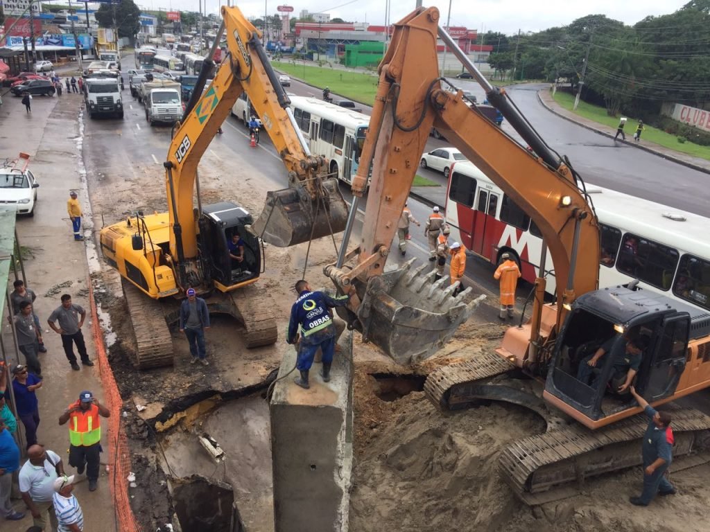Segundo a Secretaria Municipal de Infraestrutura (Seminf), o serviço que antes estava previsto para ser concluído por volta das 5h da manhã, agora deve ir até às 12h, devido à complexidade da colocação das novas aduelas e a preocupação para não atingir as redes de telefonia, água e gás. “É uma obra complexa e delicada. Estamos presenciando o esforço desses quase 50 servidores que já completam 24h aqui, para que possamos dar uma obra de qualidade à população”, completou o prefeito que segue no local coordenando os trabalhos.
