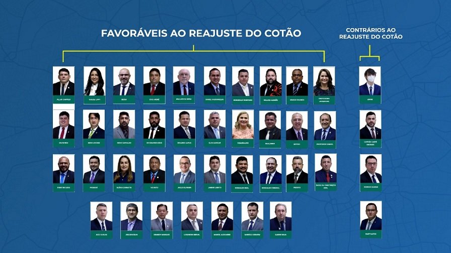 Apenas os vereadores Rodrigo Guedes (PSC), Capitão Carpê Andrade (Republicanos), Raiff Matos (DC) e Amom Mandel (União Brasil) se manifestaram contrários à proposta do reajuste do Cotão.