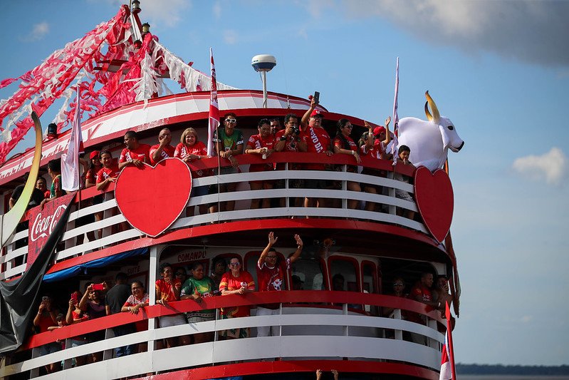 De barco o trajeto é um show à parte, podendo durar de oito a até 24 horas, dependendo do tipo de embarcação. É no barco que o clima para Parintins começa, com a animação e as músicas que entoam toda a viagem.