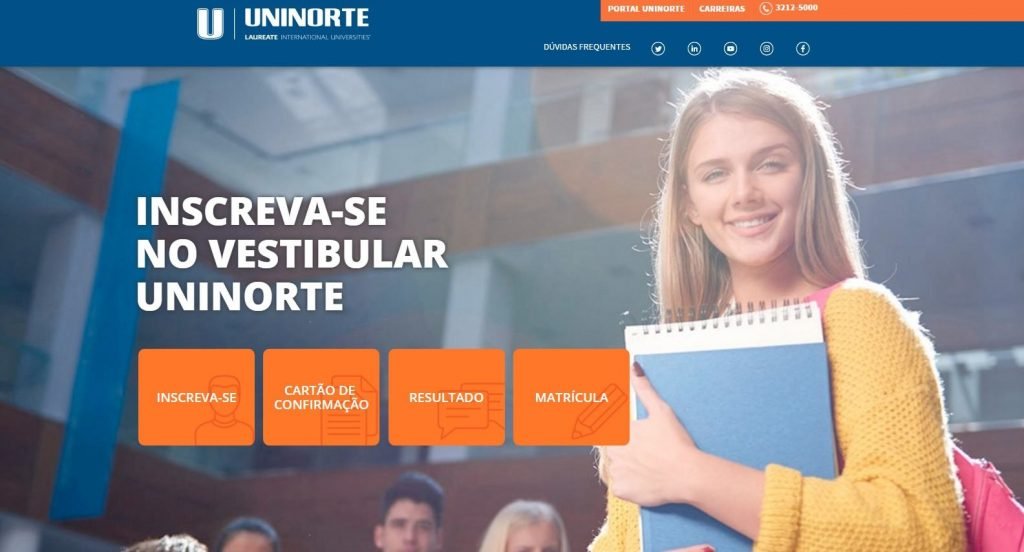 As inscrições para o vestibular da UniNorte são gratuitas e devem ser feitas no site www.uninorte.com.br/