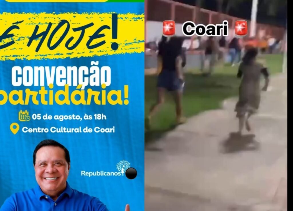 COARI (AM) – Um suposto atentado na noite desta segunda-feira, 5, interrompeu a convenção partidária do ex-prefeito Adail Pinheiro (Republicanos), candidato à Prefeitura de Coari (a 336 quilômetros de Manaus) nas eleições 2024. Segundo as informações, diversos tiros foram ouvidos durante a cerimônia, causando pânico e correria entre apoiadores e a multidão presente.